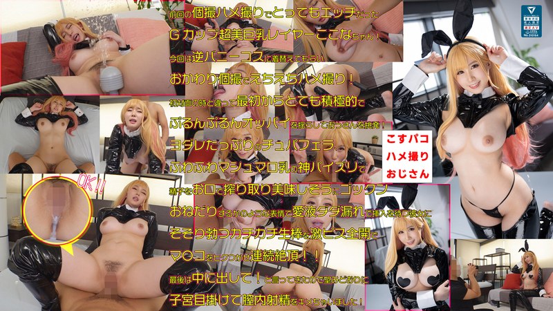 #個人撮影会素人カメラマンの僕は、スタジオもレンタルできる個人撮影会サイトをよく利用している。今回のモデルはグラビア経験もある‘のぞみ’さん22歳。92・60 ・86cmのGカップ、美少女タイプで見事なプロポーションの娘だ。「めちゃ、カワイイねぇ!」ポージングも手慣れていたので、シャッターをバシバシ切りまくる。「動画も撮っていい?」カワイイ笑顔ですんなり承諾してくれる。下着撮影までOKなので、立ち姿でブラに包まれた美巨乳を露出してもらう。「いいオッパイだねぇ!そのまま後ろ向いて。」ミニスカをまくりお尻も露出、パンティが食い込んでハミ肉が見えている。「服、全部脱いでくれる?」スタイル抜群のエロい下着姿、ソファーの上で四つん這いになってもらいお尻を突き出させる。「オッパイさわっているとこ、動画で撮ってもいい?」「えっ…。」「追加でお金払うからさあ。他には内緒で…」「う~ん…じゃあ。」少し悩んだがOK、どうやらイヤと言えない性格みたいだ。さわり心地の良い、大きな柔オッパイを揉みまくる。「んんっ…」カメラを固定して、後ろからオッパイを鷲掴みにして乳首を刺激するとビクビクと反応してくる。「結構、敏感なの?」「はい…んぁっ!」ブラを外して生おっぱい揉みまくり、ビン勃ち乳首を舐めると結構その気になってきている。「キスしていい?」「うん…」ベロキスして股を広げると、もっさりしたマン毛がはみ出している。マ○コに指を挿れるとすでに中はヌルヌル、そのままイクまで指マンで責める。「あああーっ、気持ちいい…」「舐めちゃうよ。」クンニで舐め上げ、乳吸い指マンすると身体をビクビクさせてイキまくっている。「んああっ、イク、イクっ!」お尻を突き出させ、尻肉を揉みながらアナルを接写。マ○コに指を突っ込むと、バフバフと空気が漏れている。手を取りチ○ポを触らせるとシコシコとしごいてくる。「内緒で舐めてくれる?」玉から竿に沿って舌を這わせてカリ首をパクリ、結構いやらしい舐め方をする娘だ。ゆっくりジュパジュパとしゃぶる気持ちいいフェラチオ、我慢できずベッドに寝転がる。レロレロと乳首舐めで責めながら手コキされ、ノーハンドフェラでチ○ポはビンビン。「ここまで来たら挿れちゃおうよ。」「…いいよ。」正常位でチ○ポをぶっ刺し、ヌルヌルのマ○コに腰をふる。「ああん、気持ちいい…もっと。」イっても構わず乳を揉んでベロキスしながら腰をふり続け、抜かずに騎乗位セックス。M字開脚で杭打ちしてくるスケベ娘、マ○コを擦りつけながら腰をふってくる。「あああっ、イっちゃう、イっちゃう!」エロいケツを突き出させ、バックからガンガン突きまくる。「ああっ、奥スキ、おマ○コ好き。」カワイイ顔して相当なおマ○コ好きなようだ。側位にしてオッパイを揉みながらバック突き、ハメ撮りに映る姿はかなりそそる映像だ。「ああっ、ヤバい、イっちゃう、イっちゃう!」正常位セックスで張りのあるオッパイを眺めながら、激しく腰をふりまくり生中出し!「時間はまだあるからさぁ…足りない?」「まだ、できるよ…。」「じゃあ、自分でしてるとこ見せてよ。」巨乳を揉み始めるスケベ娘、指オナニーで激しくマ○コをこすってイってしまう。「自分でもすぐイっちゃうんだね。」電マを渡すともっさりマ○コにあてて腰をくねらせ、股間を突き上げて激イキ。お尻を突き出させて、電マとバイブで責めまくる。バイブを持たせて自分でオナニーさせてもイキまくるスケベ娘。「うああぁー、イっちゃう、イっちゃう!」バイブを抜くと中出しした精子がトロリと出てくる。美少女がまさかのドスケベ娘だったけど、オナニー映像もバッチリ撮れたし最高の撮影会だった。